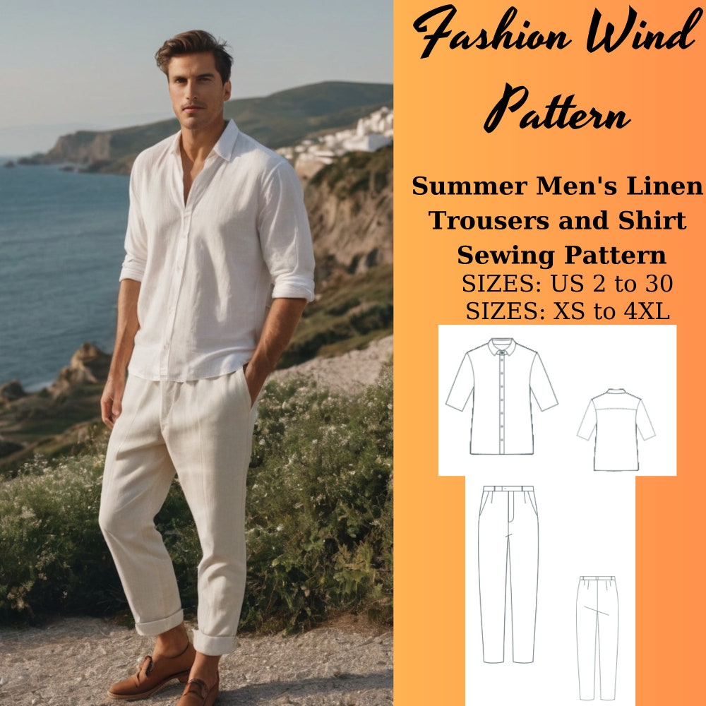 Summer Men’s linen trousers and shirt Sewing Pattern, Linen trousers and shirt Sewing Pattern, Linen Dress, Sun trousers and shirt, XS-4XL