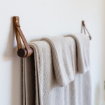 Leather Hanging Towel Holder Kit - brass hand towel rail for bath kitchen & laundry room hanging coffee mug wood rack mop and broom storage |