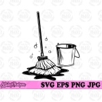 Mop Cleaning svg, Housekeeping Service Jpeg Stencil, Cleaning Monogram, Broom and Bucket Clipart, Floor Clean Cut File, Maid T-shirt png DXF |