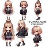 Watercolor School Girl Clipart, Watercolor School Uniform Girl Clipart, Back to school Clipart, Student Sublimation, Black Anime Girl PNG |