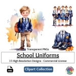 Charming School Uniform Clipart | 15 Watercolor PNGs | Student Illustrations | Diverse Students PNGs | Back to School |
