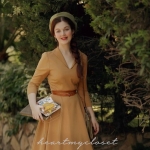 Elegant Librarian-Inspired V-Neck Ruffle Dress with Long Sleeves for Women - Bookish Fashion |