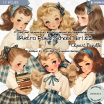 Retro Plaid School Girl Clipart, Blue Plaid Dress, Student, Preppy, Uniform, High School, Paper Doll, PNG, Scrapbook Junk Journal Craft |