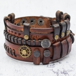 Steampunk Leather brown bracelet. Wristbands with gears and mechanisms. Handmade in Ukraine! Unisex gift for parties or everyday wear. |