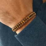 Tiger Eye Hematite Bracelet - Men's Beaded Bracelet - Gold Tone Stone Bracelet - Handmade Leather Bracelet - Adjustable Gift for Him |