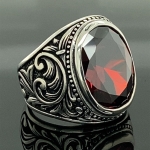 Men Handmade Ruby Stone Ring , Oval Red Stone Ring , Ottoman Style Handmade Ring , 925k Sterling Silver Ring , Gift For Him |