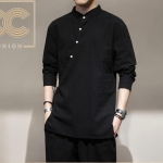Men's Long Sleeve Shirt | Fashionable Stand-Up Collar | Plain Buttoned Attire |