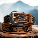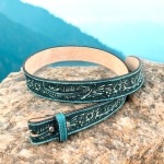 Hand Painted Green Floral Leather Belt Western Leather Belt For Women and Men, Cowboy Embossed Tooled Full Grain Leather, Engraved Belt Gift |